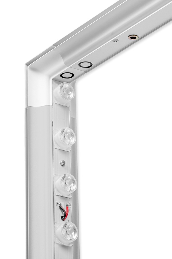 Produkten kallas även SEG-displaydubbelsidig LED lightboxljuslåda med tryckLED banner display och textildisplay med belysning. Den används ofta inom retail, showroom och event.
