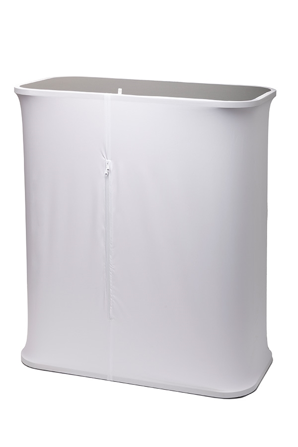 Leveres komplet inkl. 1x hylde, sort bordplade, 2 x banner med print, LED lys samt transporttaske.